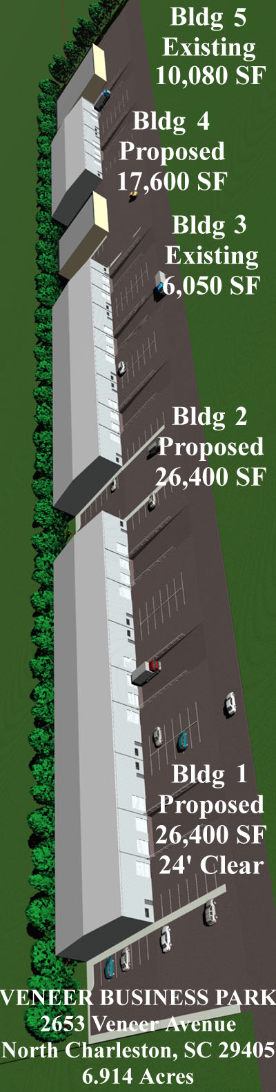 Bldg A would be 26,400 SF, 24′ clear, and have fire protection, drive-in / dock-high doors, and separate auto parking.