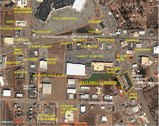 Galleria Corners fronts Houston Lake Road at Osigian Boulevard.