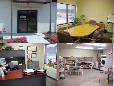 The front half is finished offices, and the rear half could be storage, showroom, or more offices.